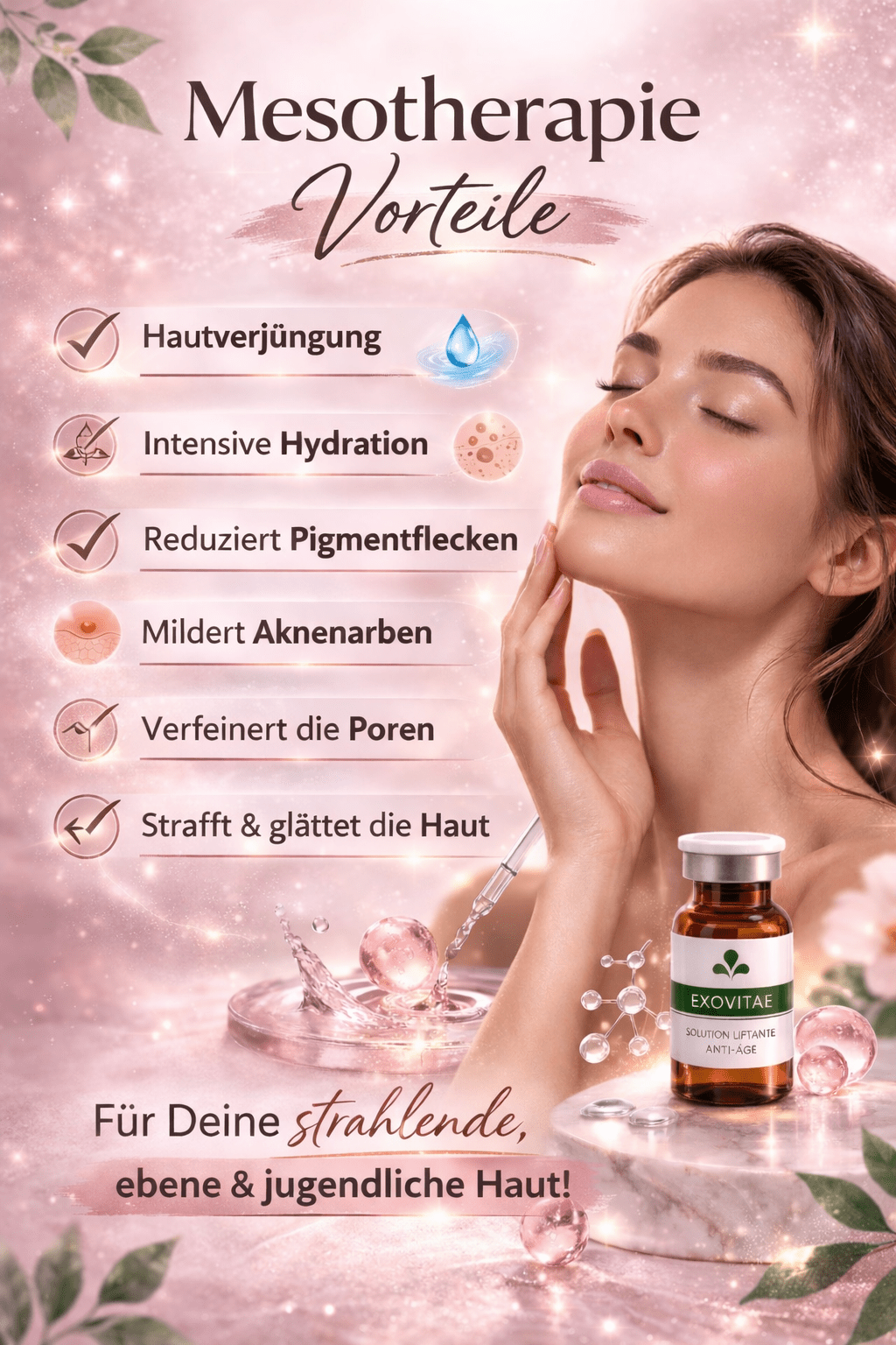 Die Kombination aus Exosomen, PDRN, Hyaluron und Peptiden ist wirklich beeindruckend. Ich arbeite viel mit Microneedling und Mesotherapie – die ExoVitae Ampullen sind dafür die perfekte Ergänzung.